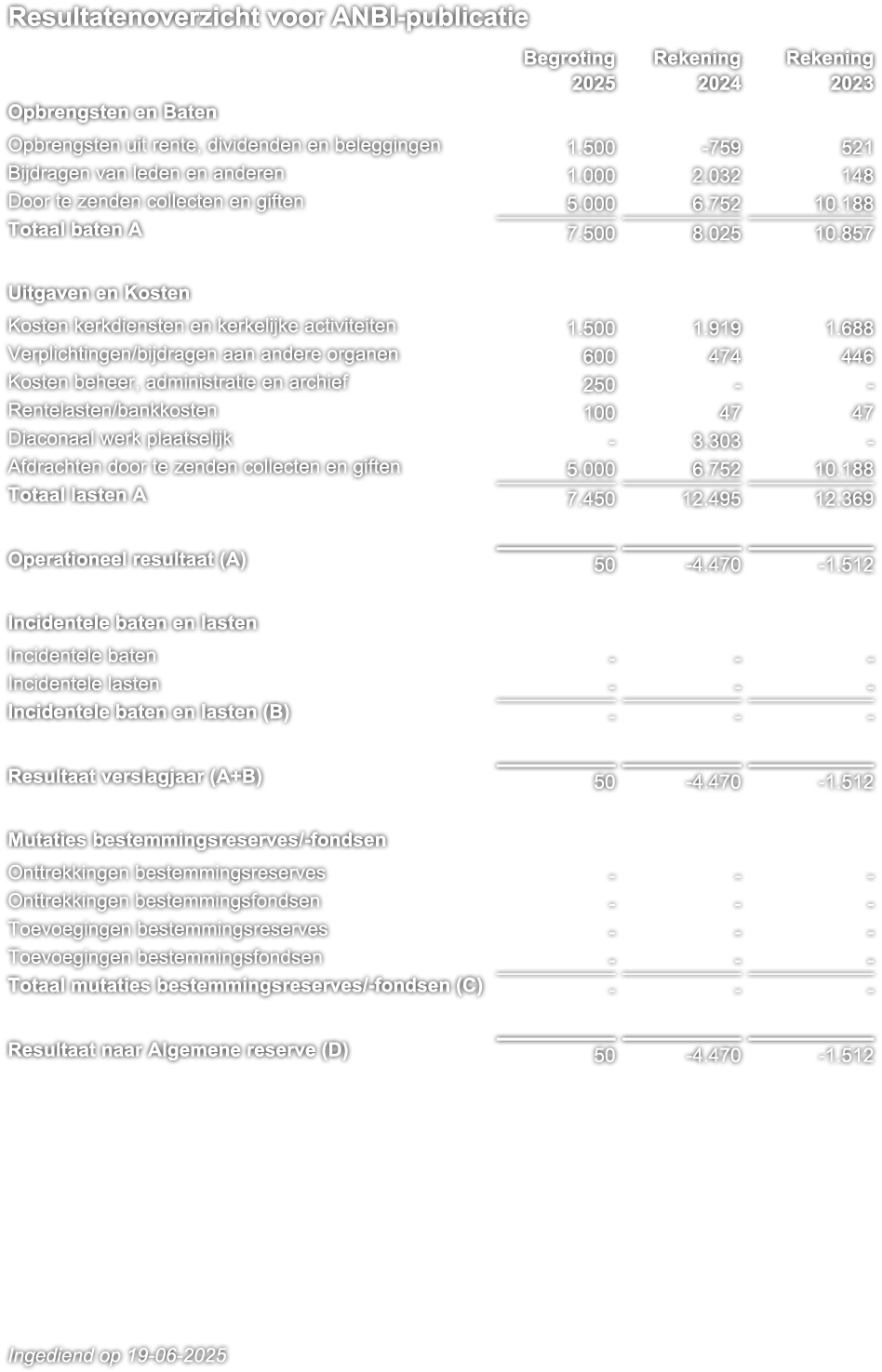 Er is echter meer doorbetaald dan was ingezameld. Dit (lasten)surplus is ten laste gekomen van de algemene reserve van de diaconie.